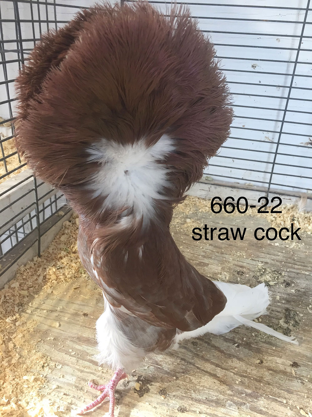 He is bred from a powerhouse red cock and one of my most elegant, tall, glassy feathered black hens. He was a late bred and has turned into one of the better birds I bred in 2022. He offers so much in the way of chain extension and top feather and overall feather wealth and he has a nice slender body. I chose him as the mate for my Black hen #393 that was Best Black at the National. From them I bred both blacks and red straws that will find their way into my 2024 breeding program.