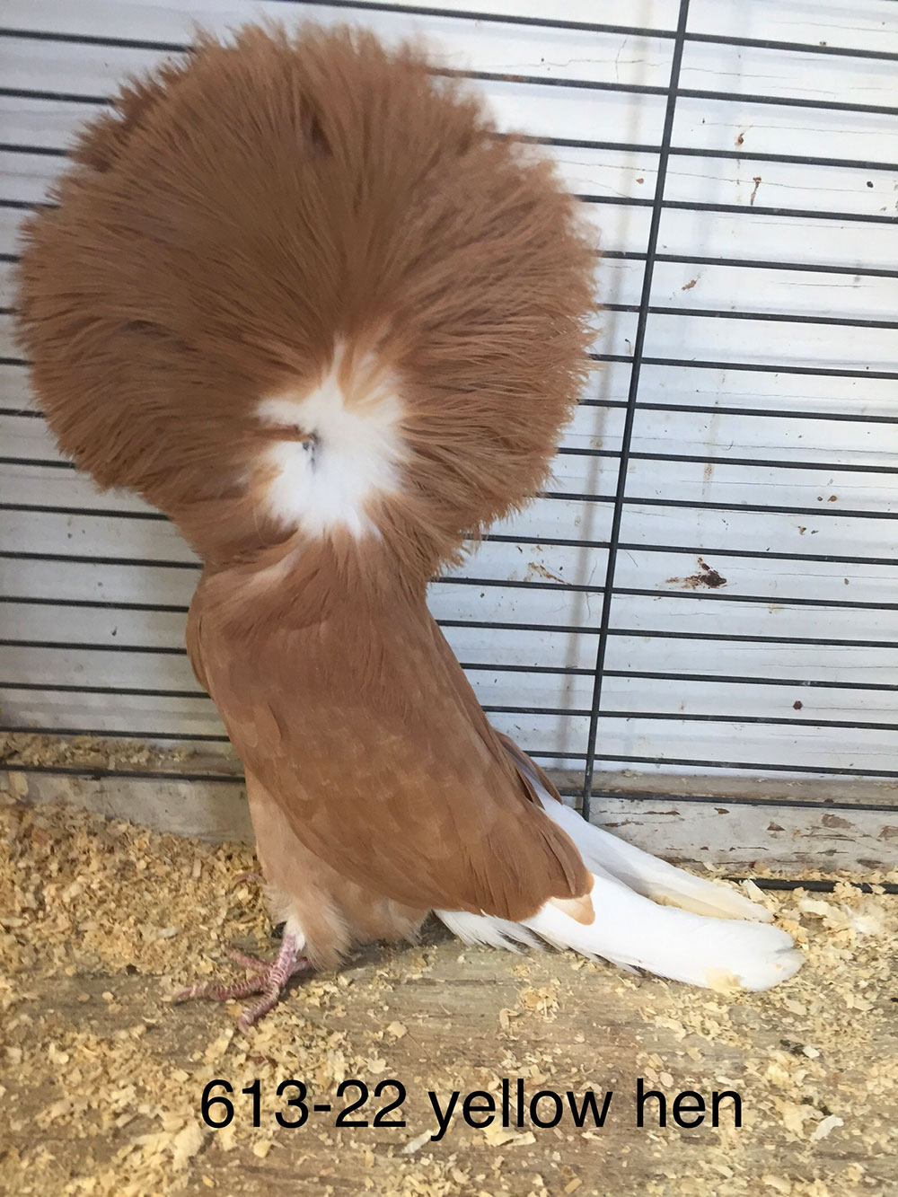 Not only does she have feather length and wealth but she carries it really well. We all know great families of Jacobins are built from powerful hens just like this. I rated her as one of my most important stock hens for this breeding season. She did not disappoint. She was mated to yellow cock 538-22 who was Best Young Yellow cock at the National and Wow! I am more than excited with the young yellows they have produced. Here is a hen that would do any breeding program a ton of good! |
